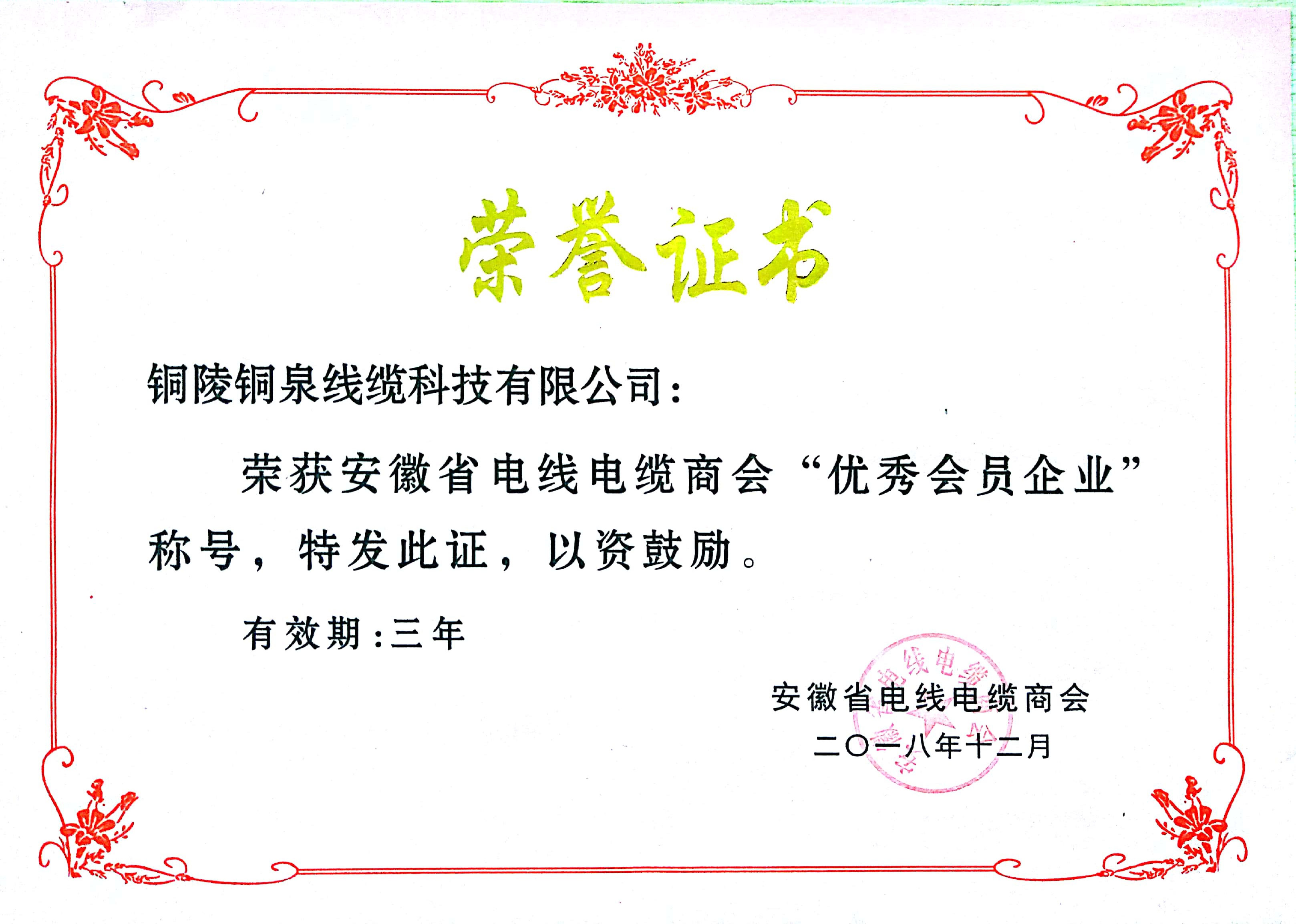 安徽省電線電纜商會(huì)優(yōu)秀會(huì)員企業(yè)